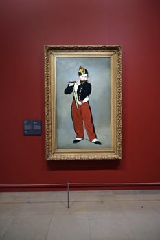 - The Fife Player (Édouard Manet): This deceptively simple yet striking portrait of a young fife player is a bold statement on color, form, and flatness, inspired by Spanish portraiture. This painting, in particular, was likely influenced by Manet's travels to Spain and the Prado Museum in the 1865, the year before he painted this masterpiece. Manet’s radical departure from traditional shading and his focus on a single figure against a plain background was shocking at the time, making this painting a milestone in the transition toward modern art.